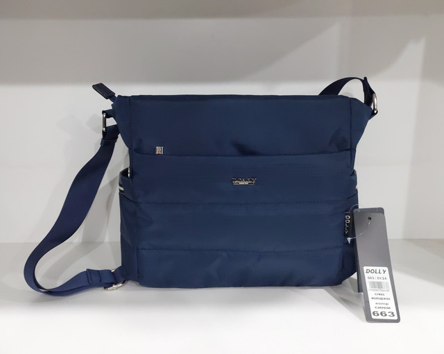 Тканинна текстильна легка сумка кросс боді жіноча cross body один відділ на блискавці змійці через плече синя з кишенями Dolly 663.
