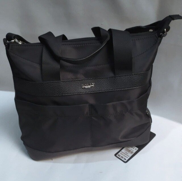 Ультрамодна, міська молодіжна тканинна жіноча чорна сумка Dolly 659 на плече з двома ручками текстильна легка виконана з нейлонної болонової тканини з легким блиском.