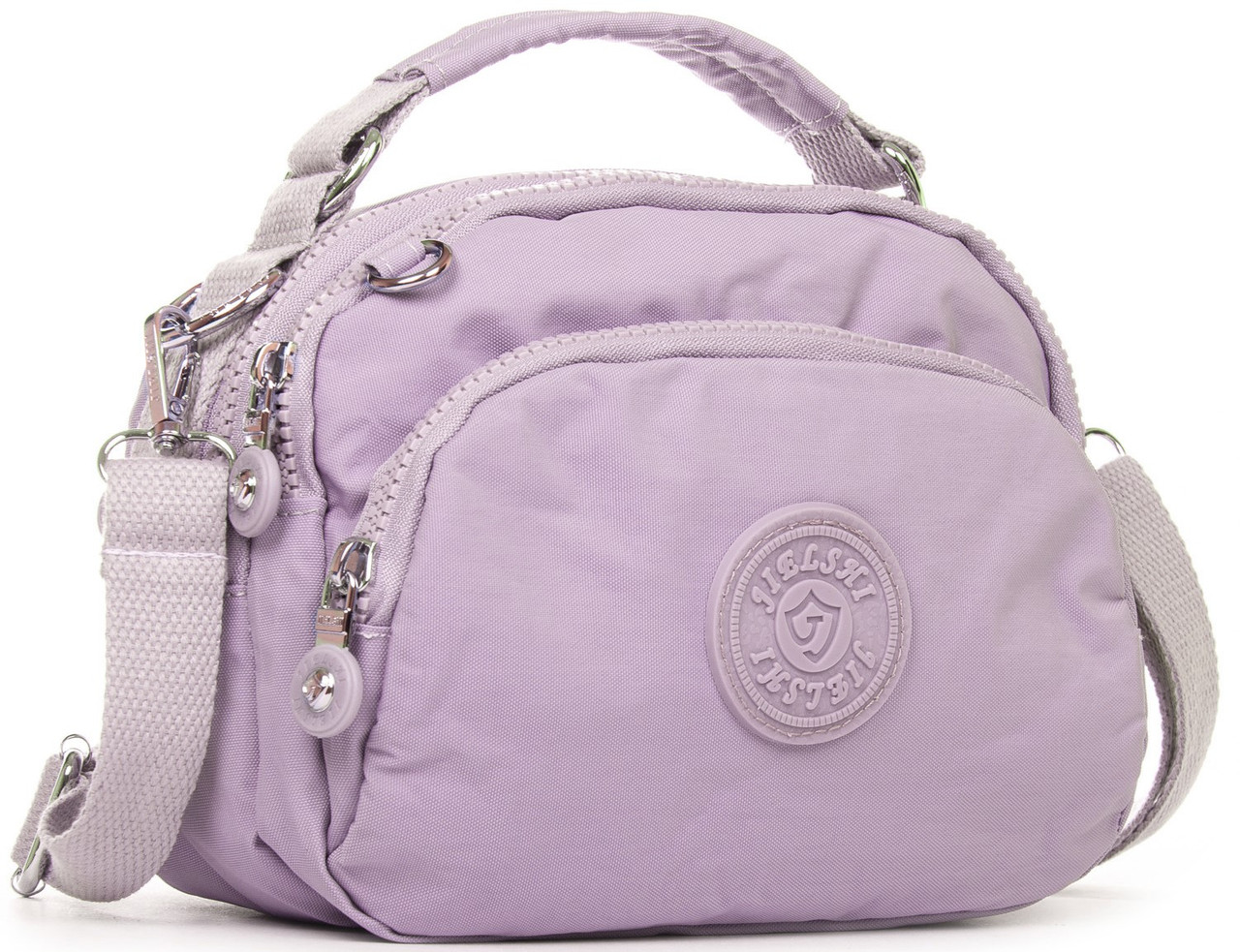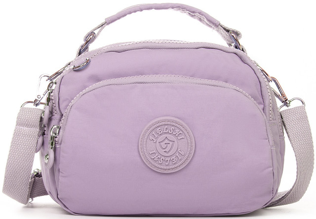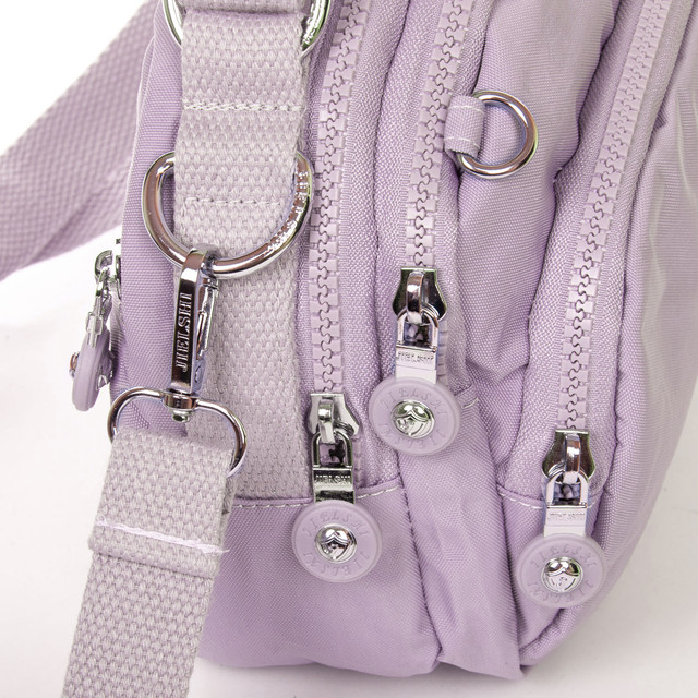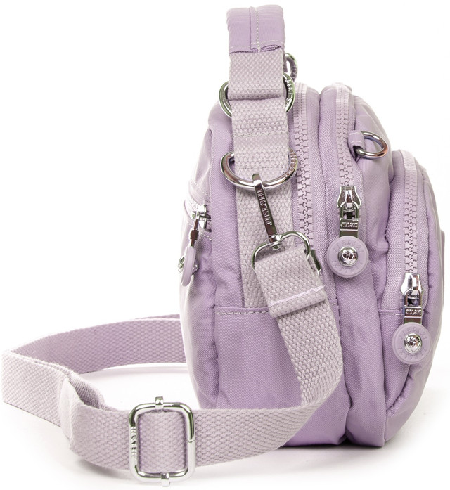 Ультрамодна маленька фіолетова сумка через плече жіноча тканинна полотняна кросс боді на два відділи на змійках з короткою ручкою зверху Jielshi 1130.