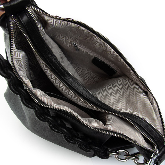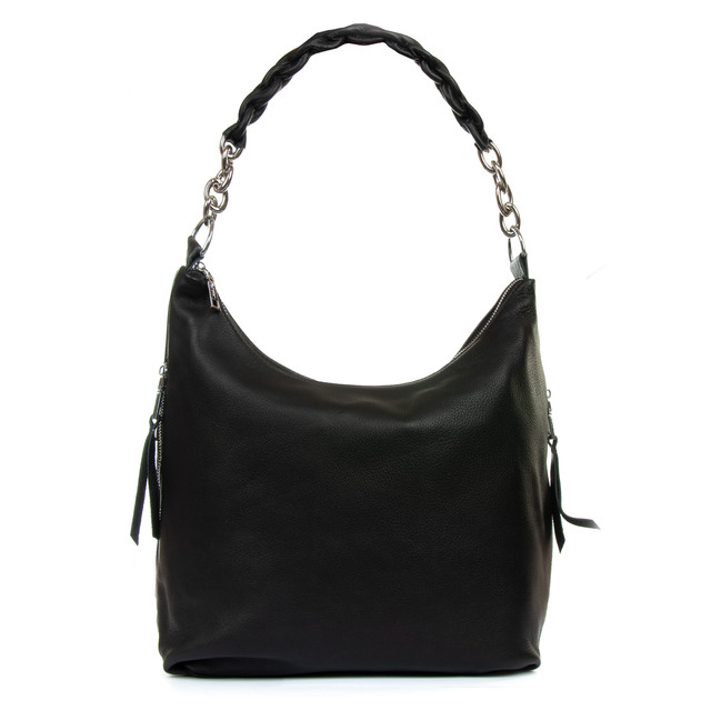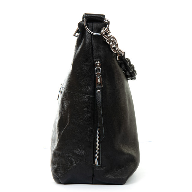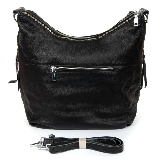 Сумка мішок на дві змійки класична жіноча шкіряна чорна на плече на два відділи на змійках зверху Alex Rai 8087-9