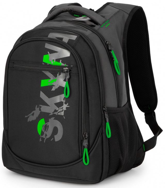 Модний підлітковий ортопедичний рюкзак портфель ранець SkyName 90-147-5 чорний з зеленим на три відділи блискавки на змійках із модним абстрактним принтом.