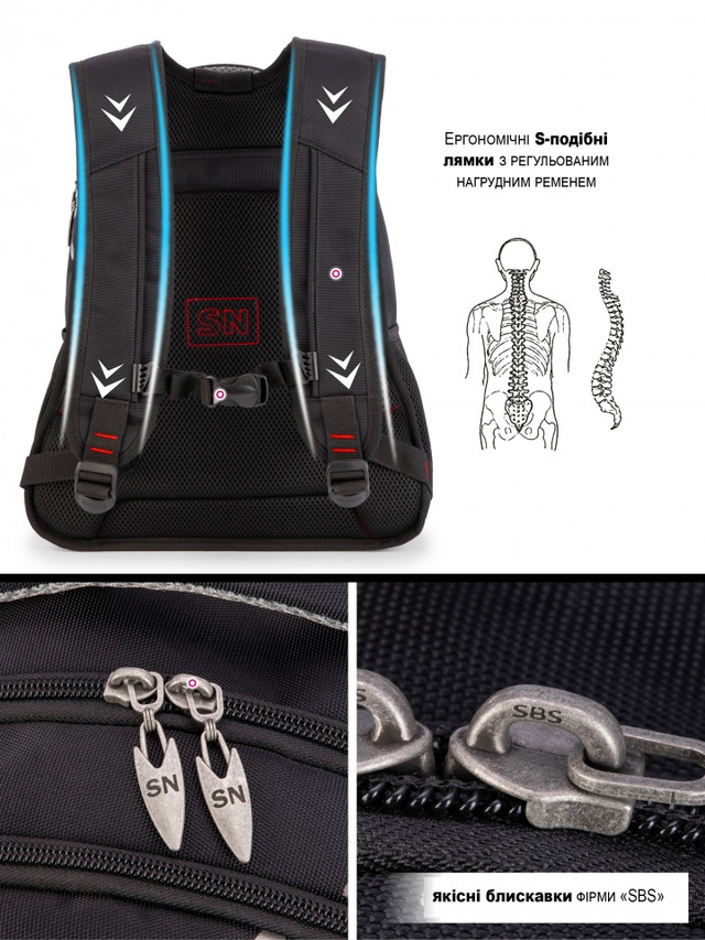 | Особливості | Світловідбивні елементи, Нагрудний ремінь, Регульовані лямки |